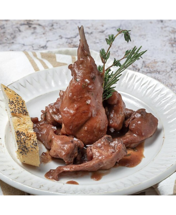 Servieren Sie das Kaninchen mit seiner Sauce, begleitet von saisonalem Gemüse, Kartoffeln oder frischer Pasta für eine vollständige Mahlzeit.