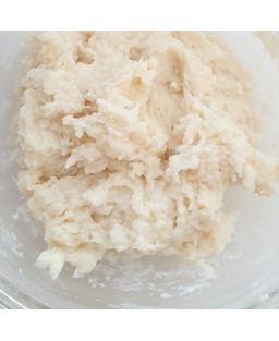 - 50mlの沸騰したお湯(お湯、oyu)を小麦粉の上に注ぎます。